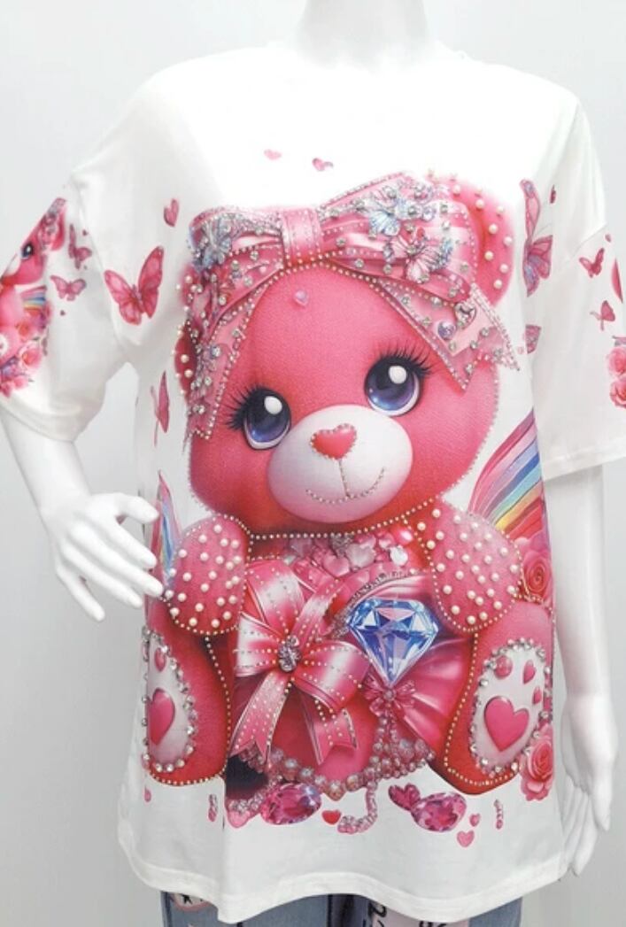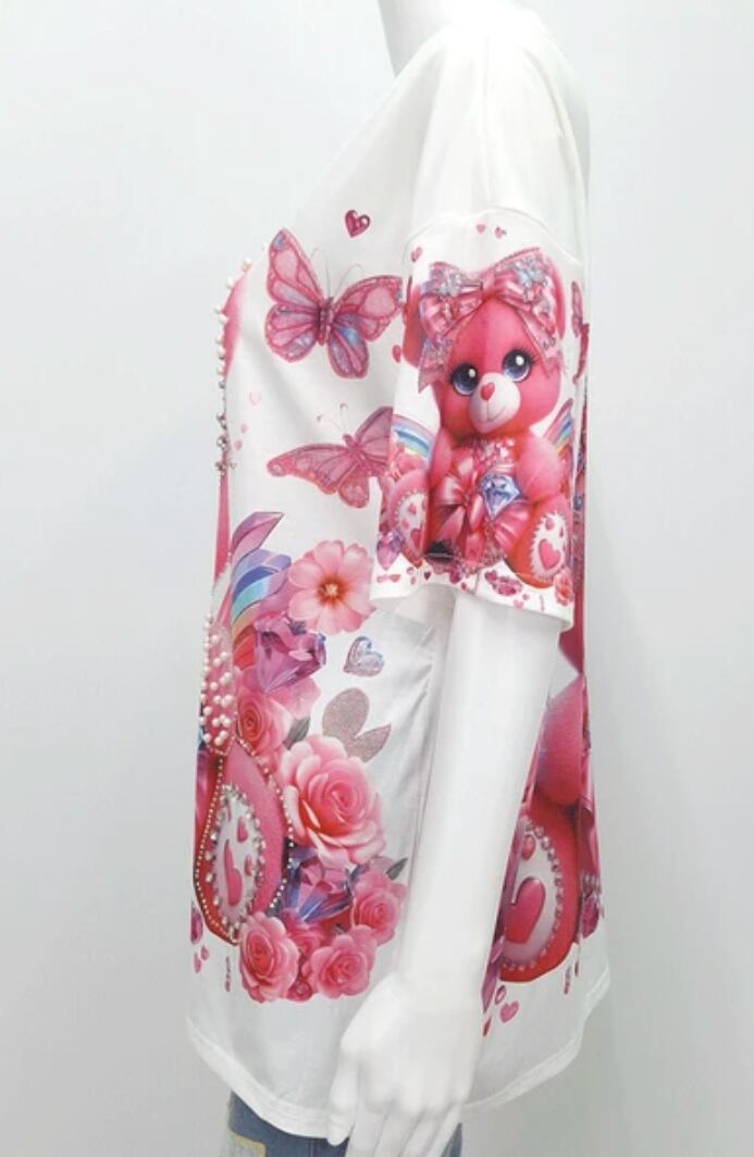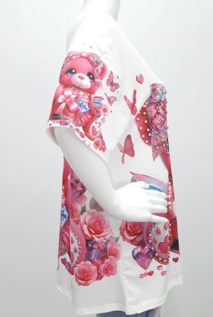 Tシャツ◆プリント、ビジュー付きプルオーバー、レディース
