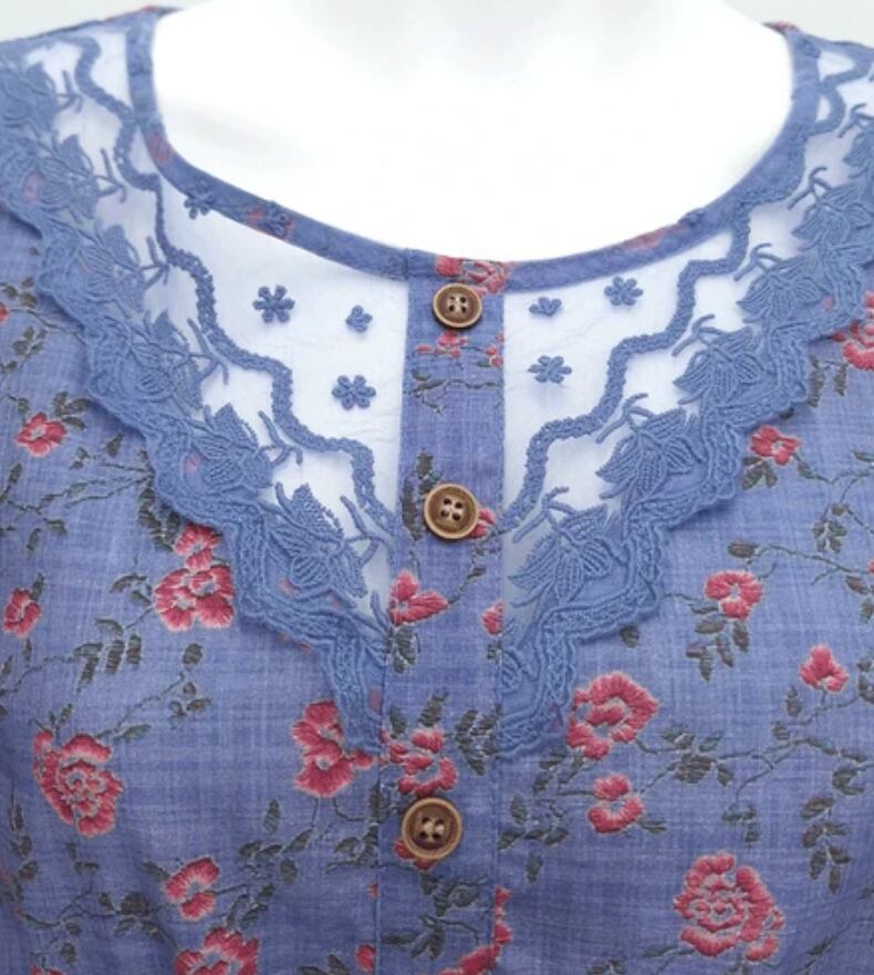 衿と裾には透け感のあるパワーネット素材を切り替え、さらに繊細なレースで縁取ることで、軽やかさと女性らしさをプラスしました。
