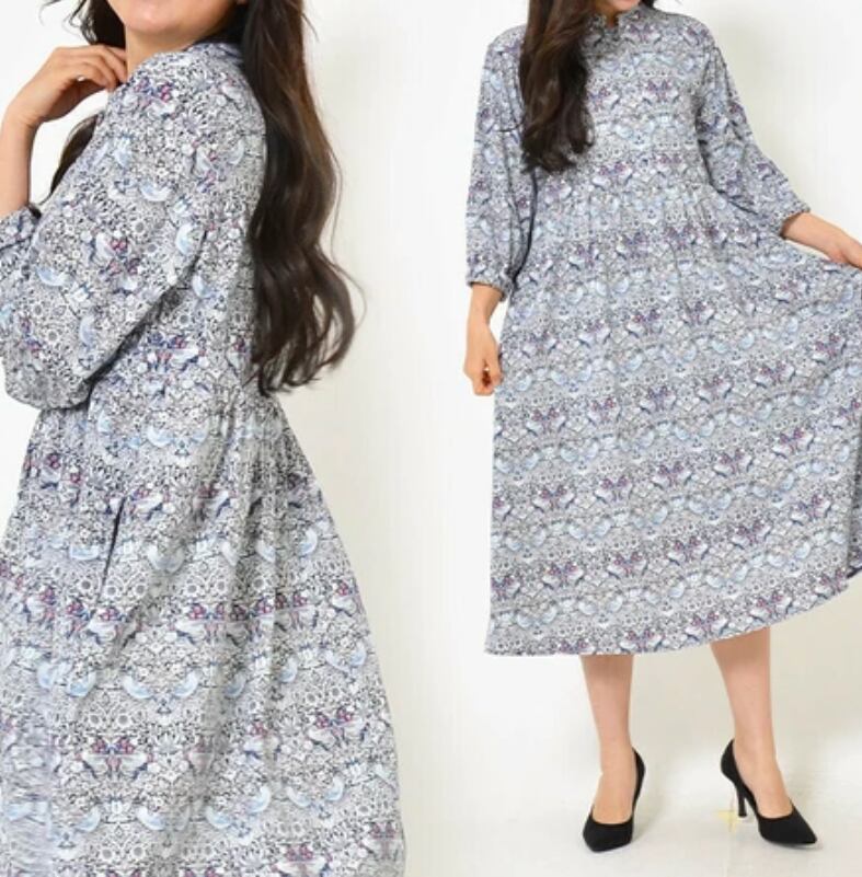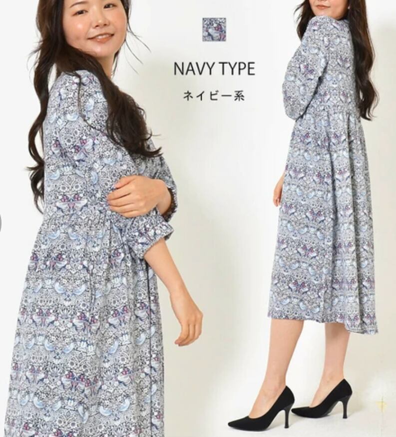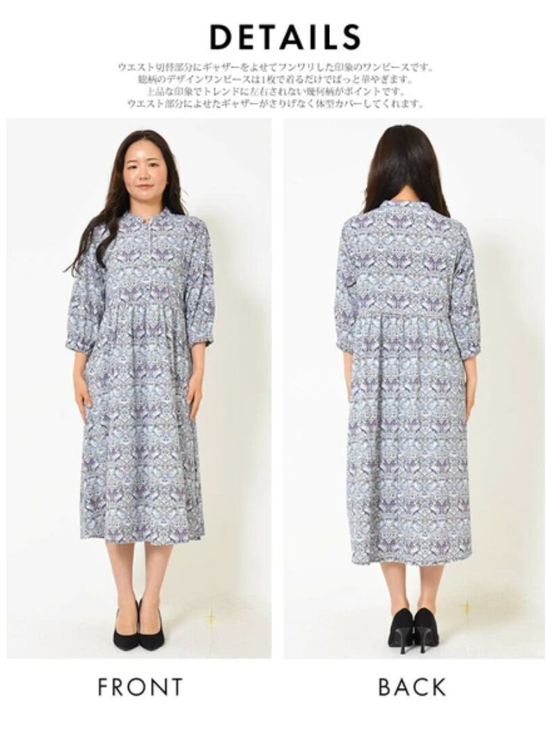 ウエスト切替部分にギャザーをよせて、ふんわりした印象のワンピースです。さりげなく体型をカバーしてくれます。