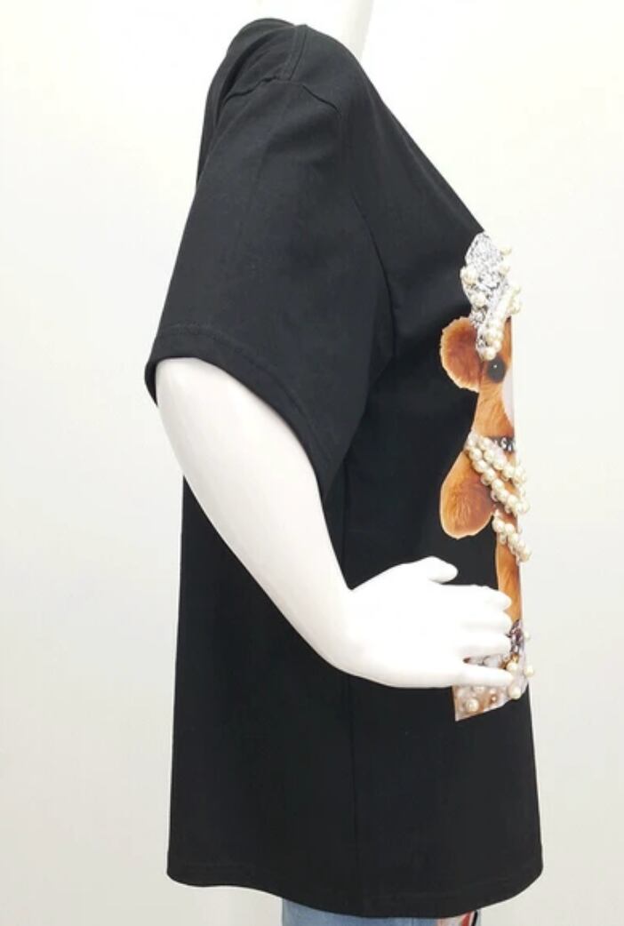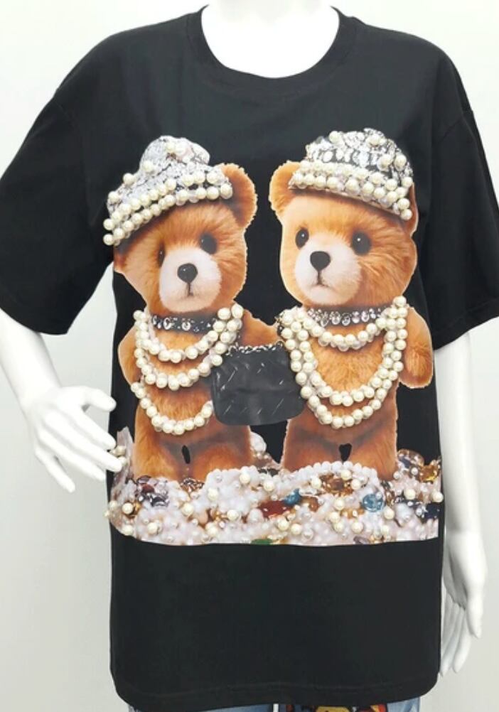 プルオーバー◆くまプリント、パール付き◆レディース