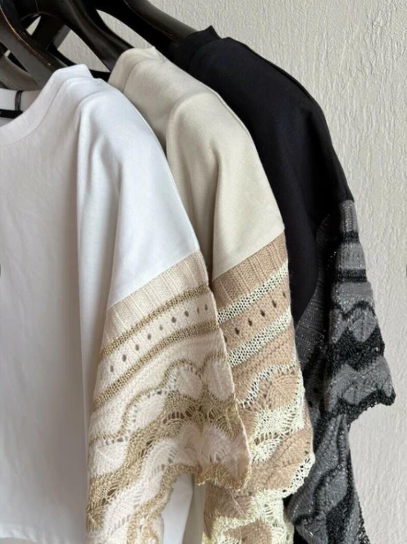 透かし編みスリーブTシャツ◆オフホワイト◆レディース