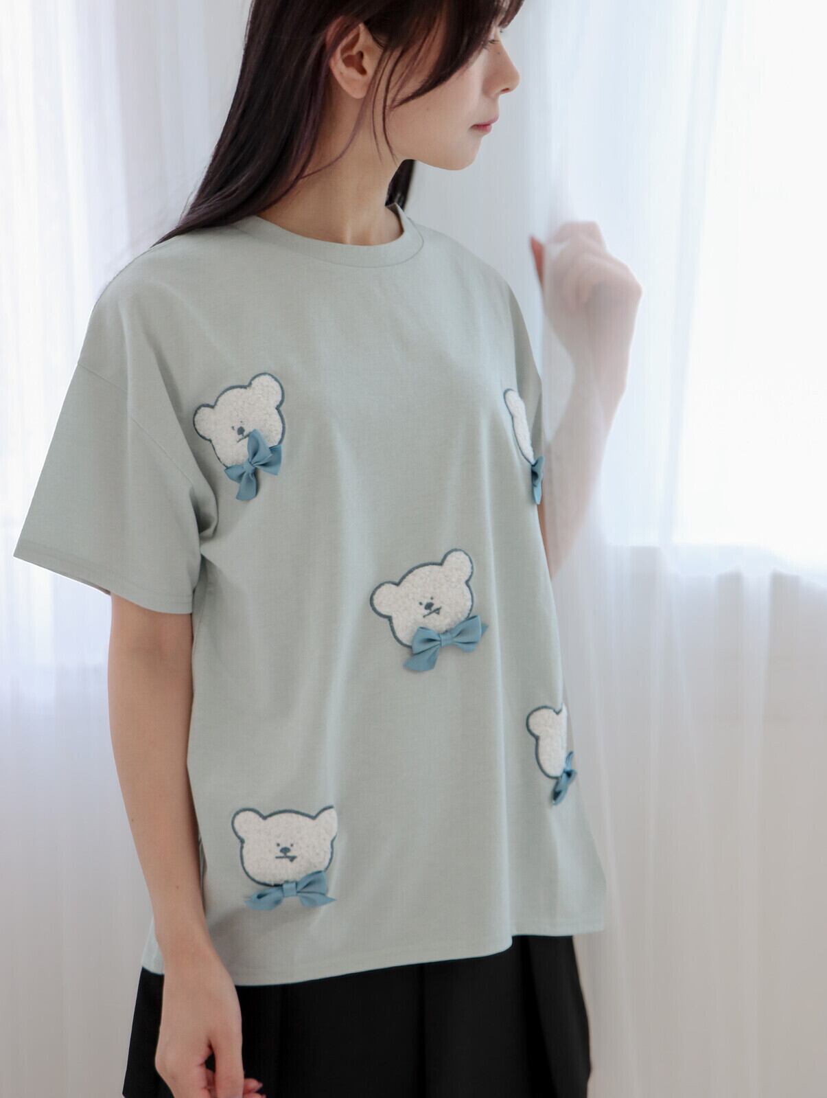 刺繡クマいっぱい蝶ネクタイいっぱいTシャツ◆日本のブランド