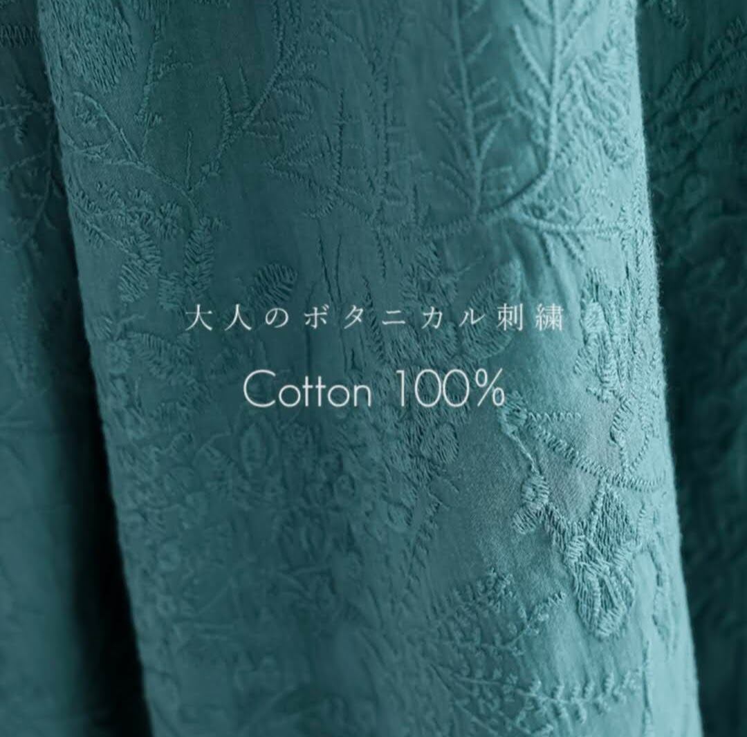 サラリとやさしいインド綿ならではの風合いで清涼感あふれる綿100%素材に、繊細なボタニカル刺繍をあしらった上品ワンピース。綿100%ならではの自然な風合いと軽く爽やかな着心地が夏にぴったり。季節ごとにカーディガンなどの軽アウターやインナーと合わせて着用いただけるとロングシーズンお楽しみいただけます。