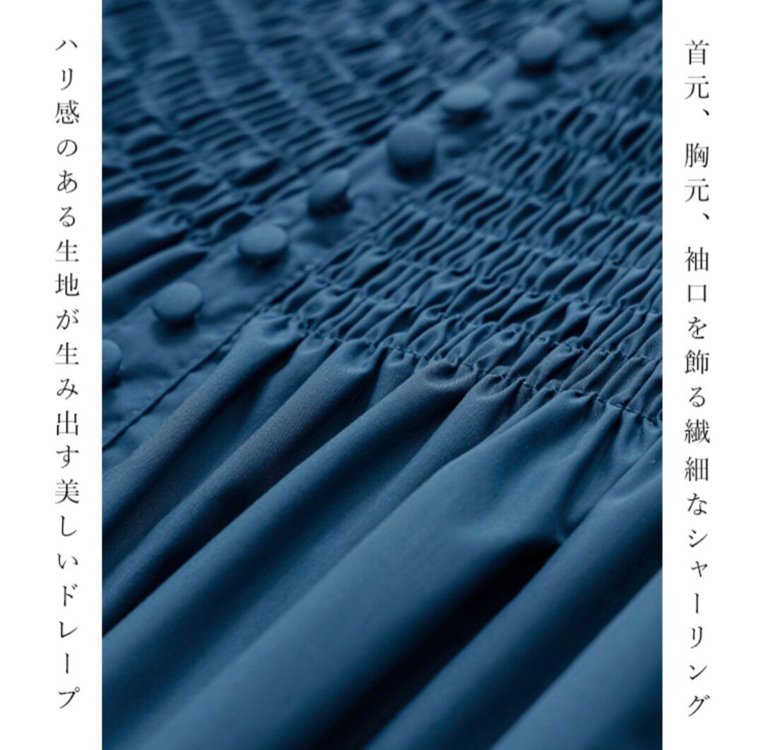 衿元~胸元にかけてのシャーリング使いで肩回りを華奢に見せます。