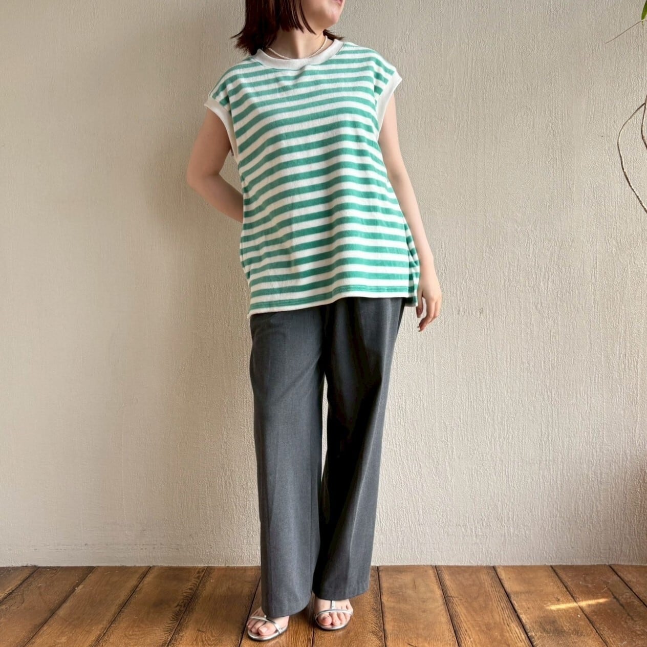 カジュアルなボトムと相性の良いベロアボーダーです。