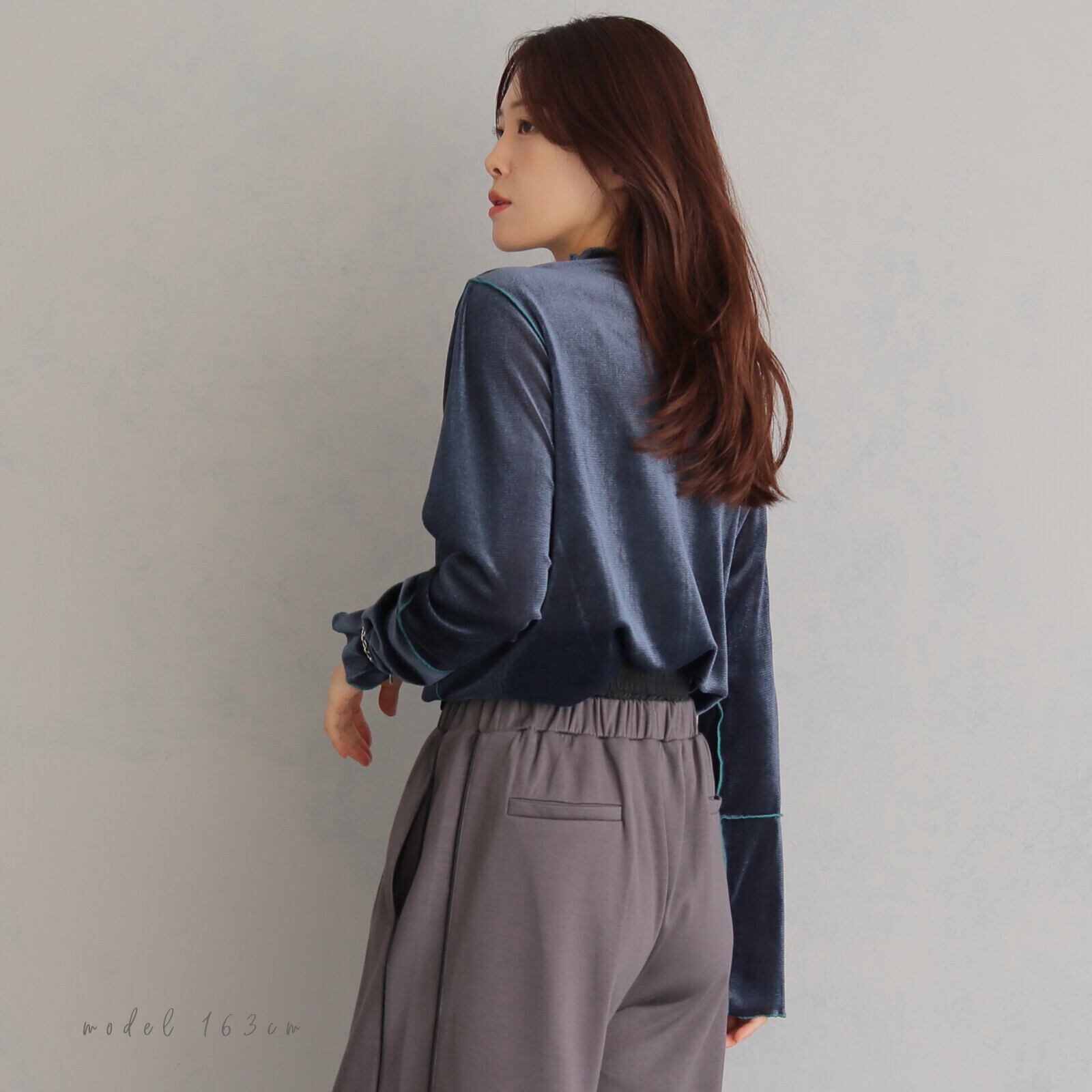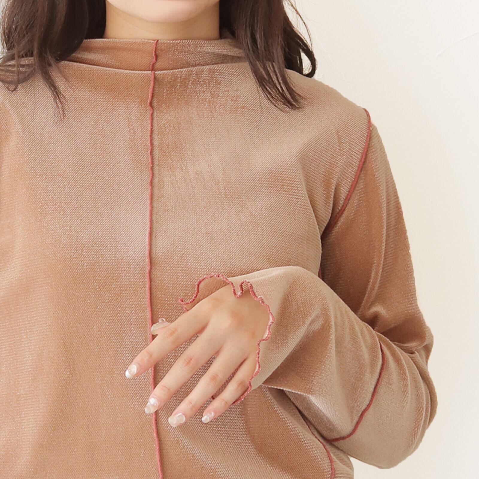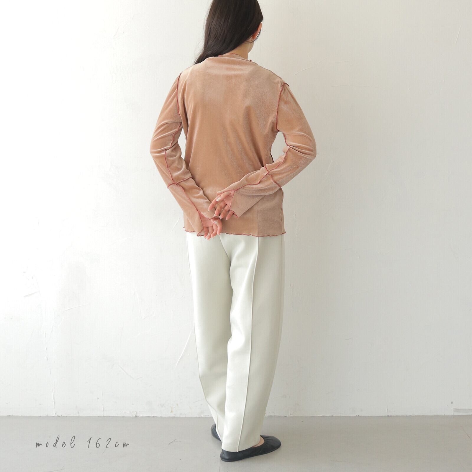 程よい軽やかなメッシュで、透け感のあるクラシカルなスキントップス。ベロア素材で上品でモードな印象を演出します。