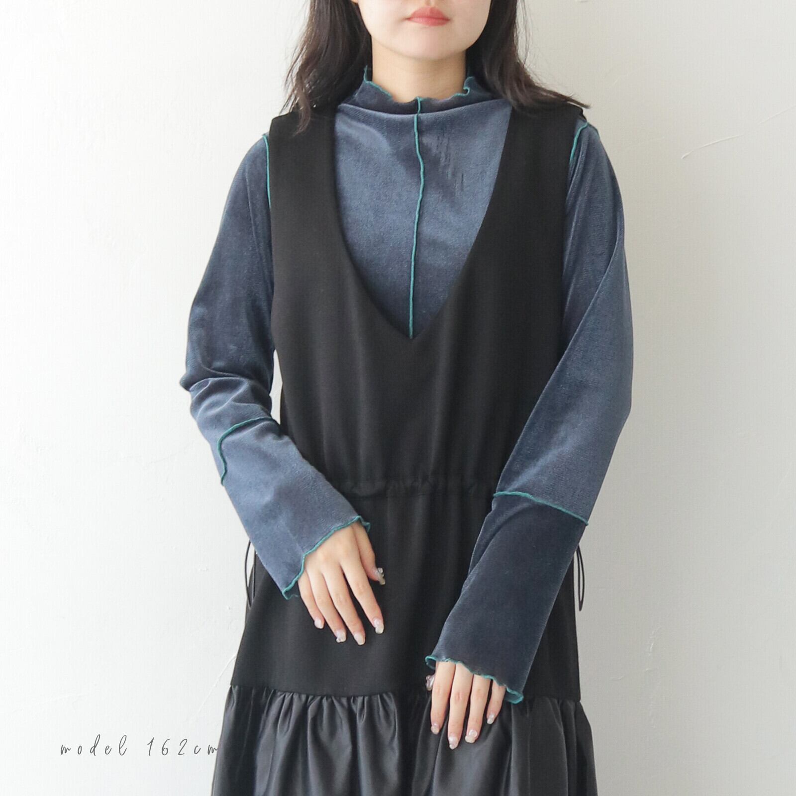 ネックがあるのでシャツやジャケット、ニットなどのインナーとしてロングシーズン着用できるアイテムです。