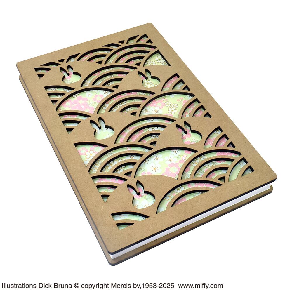 ◆ 表紙はMDFに青海波とミッフィーの透かし彫りを施し、下絵には手染め友禅和紙を使用した贅沢な御朱印帳に仕上がっております。