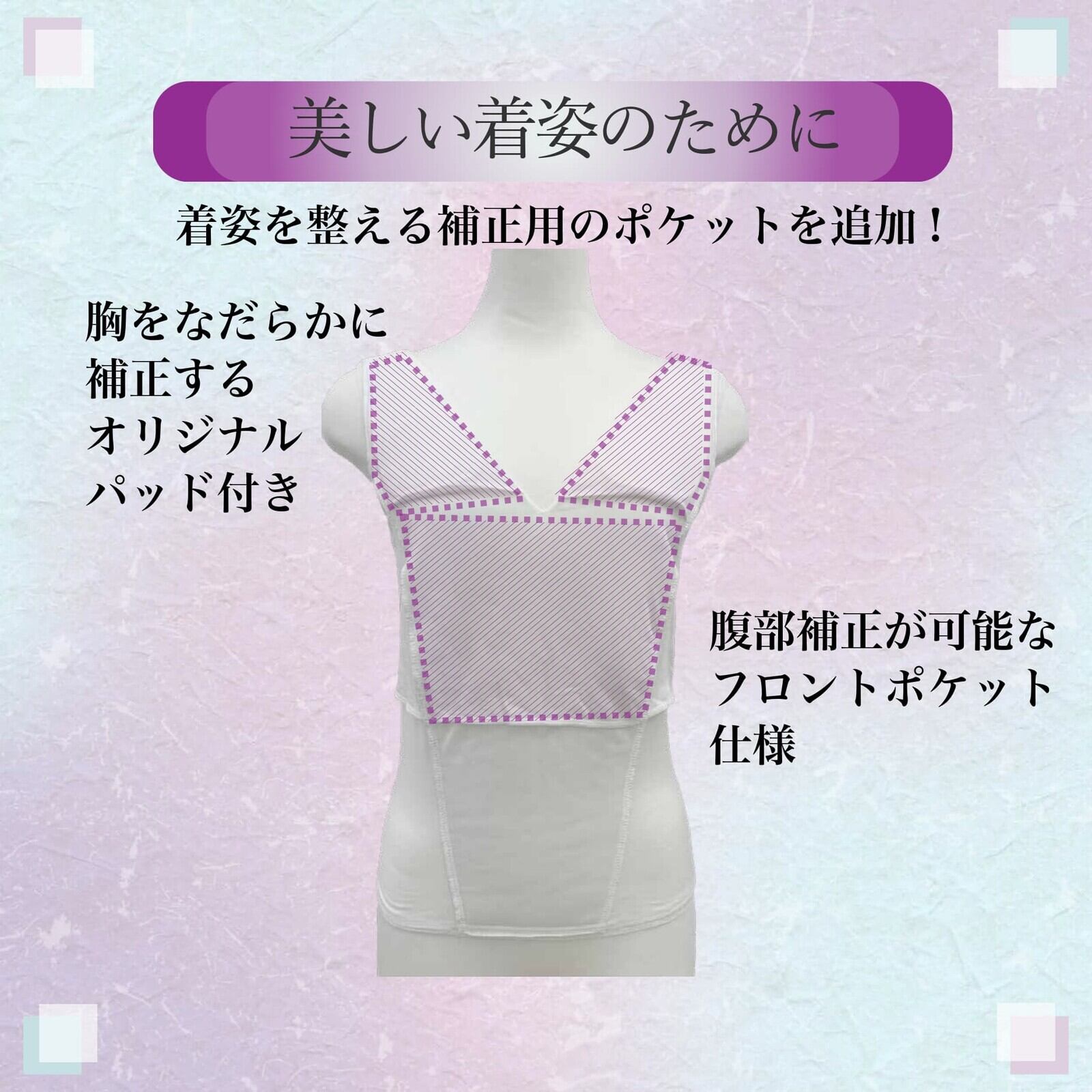 ◇ バストのふくらみを適度に抑える為、見た目もすっきりとし、着物をさらに美しく見せることができます。