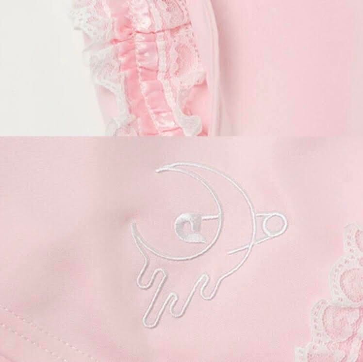 ゆめかわな配色に、ドロっと垂れた月の刺繍がキュート♪