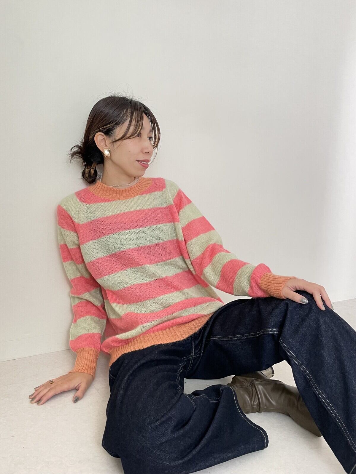 コーデを格上げしてくれるお洒落ニット。カラフルな配色のワイドピッチなボーダーパターンが目を惹きます。